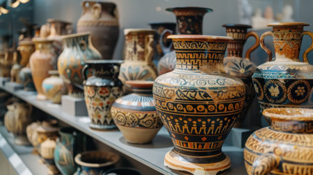 Discover a captivating array of ancient pottery artifacts displayed beautifully in a museum. Each piece reflects rich history, intricate designs, and timeless craftsmanship.