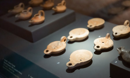 Collection of antient oil lamps in Lycian Civilization Museum, Demre, Turkey
