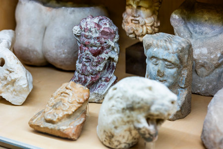 Alexandria, Egypt - November 03, 2021: Ancient Exhibits in the Alexandria National Museum - Marble and Stone Statues, Books, Medieval Decoration and Roman Tableware