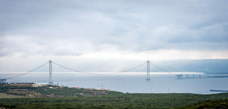 Istanbul, Turkey - October 1, 2015: Building the new bridge over the Sea of Marmara