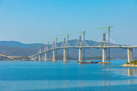 Peljesac Bridge Under construction in Croatia. Peljesac Bridge links Southeastern Croatian exclave to rest of the Croatia bypassing Bosnia Herzegovina. Under construction from 2018 to 2022 in Duboka.
