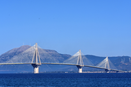 Suspension bridge crossing Corinth Gulf strait, Greece. Is the world's second longest cable-stayed bridge