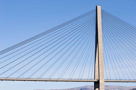 Single pillar close up of a suspension bridge