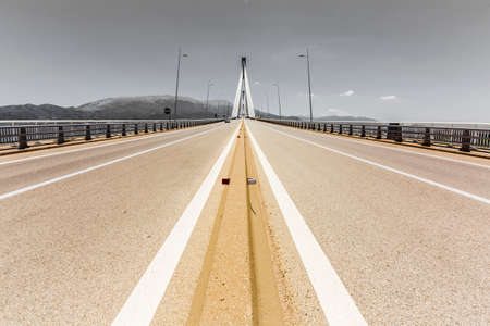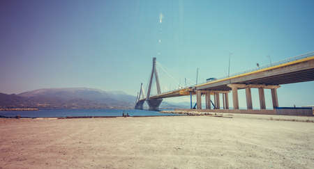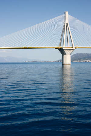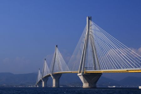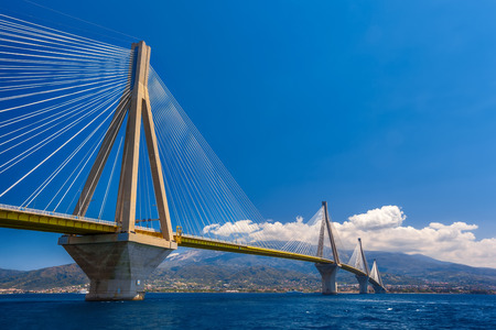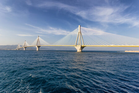 Suspension bridge crossing Corinth Gulf strait, Greece. Is the world's second longest cable-stayed bridge