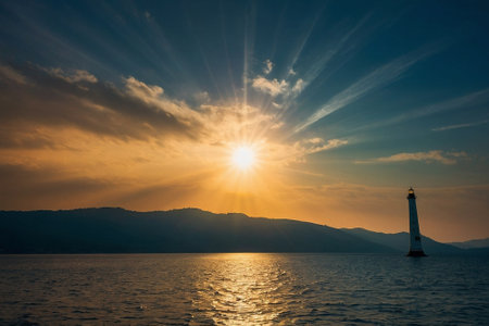 Lighthouse at sunset on the Adriatic Sea in Montenegro