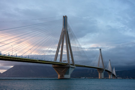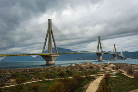 Image of Rio-Antirio bridge at cloudy day, Greece