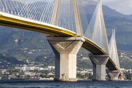 Detail of the multi-span cable-stayed bridge Rio - Antirrio, in Patras city, Greece