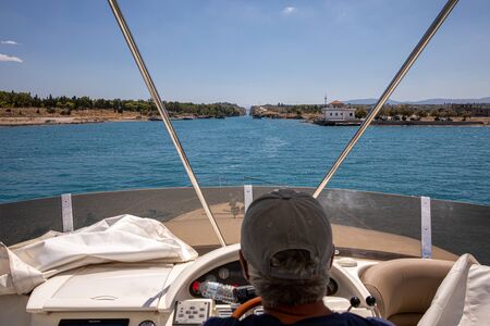 Waiting for passing by yacht outside of the Corinth Canal, Greece.