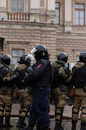 Saint Petersburg, Russia - 31 January 2021: Police and military force with weapon on street, Illustrative Editorial