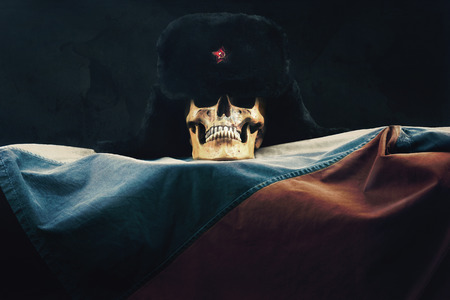 Skull with old Uschanka and Russian Federation Flag