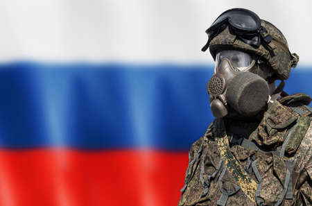 Russian soldier in camouflage uniform on the background