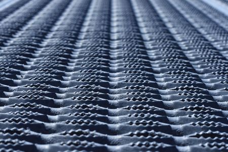 texture of gray plastic carpet close-up. ribbed rubber texture.