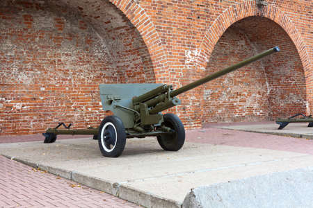 Krasnogorsk district, Moscow region, Russia - July 11, 2021: Rare retro cannon. Vadim Zadorozhny Vehicle Museum. One of the largest private antique vehicle museums in Europe
