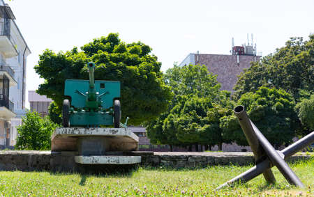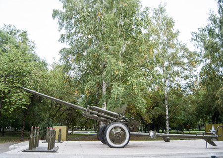 Historical place of battles Leningrad front during the second world war in Russia, exhibition of military weapons, anti-aircraft gun