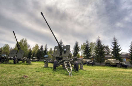 View of the russian cannons and howitzers in park. Military museum outdoors
