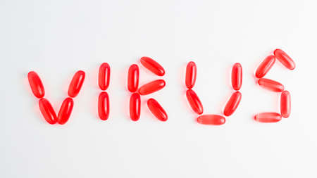 Red polls with virus word on a white background