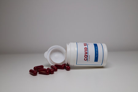 covid 19 medical pills medical pill container on table