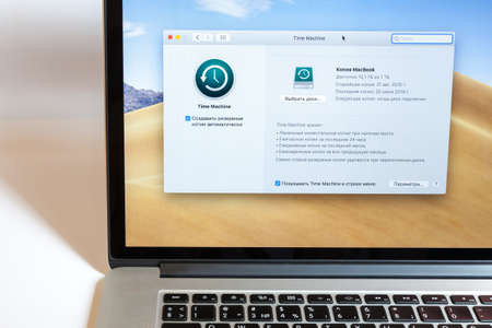 Moscow / Russia - July 7, 2019: Open MacBook, on-screen program Time Machine.
