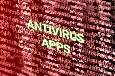 3D antivirusword on technology related words. online, digital, technology and awareness illustration.