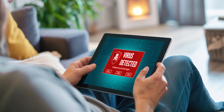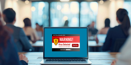 A visual of a computer screen with an antivirus alert showing the importance of keeping software updated to prevent fraud..