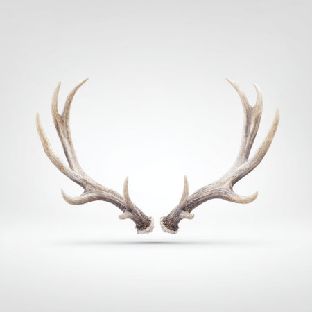 Beautiful symmetrical deer antlers displayed against a clean white background, perfect for nature, wildlife themes, and rustic decor. Ideal for diverse projects.