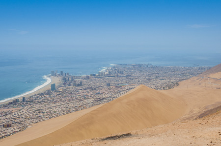 Aerial view of the port city of Iquique in northern Chile at the shores of the Atacama Desert.