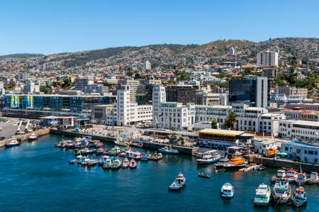 VALPARAISO, CHILE - NOV 9, 2014: Port of Valparaiso. Valparaiso is an important port city on the Pacific Coast of Chile.