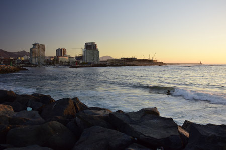 Antofagasta, Region de Antofagasta, Chile - April 19, 2017: Panoramic view of the coastline of Antofagasta, know as the Pearl of the North and the biggest city in the Mining Region of northern Chile.