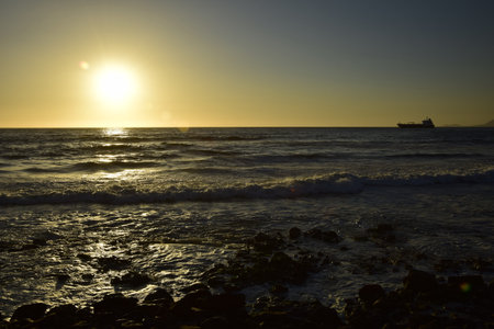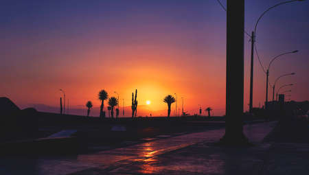 Sunset in the ocean, view from the embankment of Antofagasta, Chile
