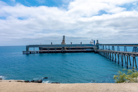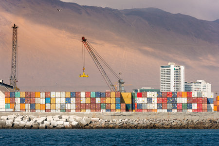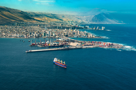 Arica, Chile - October 20, 2013 : Aerial view of the sea port of the Arica city on October 20, 2013 in Arica, Chile.