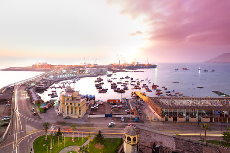Iquique, Region de Tarapaca, Chile - Port of Iquique at dusk in northern Chile.