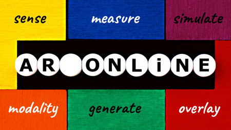 Photo on ar (augmented reality) theme. The words ar online, on a colorful background. Interactive experience concept image