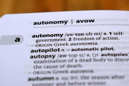 Close Up Of English Dictionary Page With Definition Word - Autonomy Image
