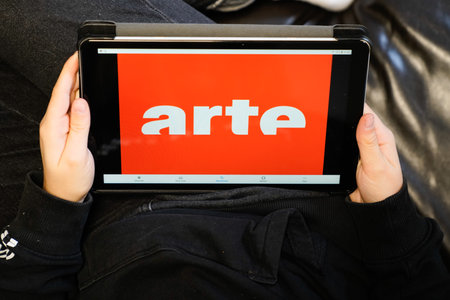 Bordeaux , Aquitaine / France - 03 15 2020 : arte sign logo on screen tablet French german media Group holding company