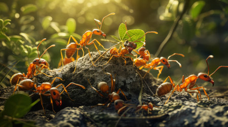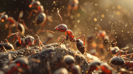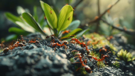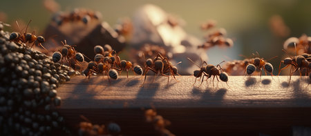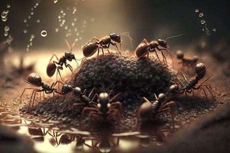 Fire ants carry food, working in unity generated by artificial intelligence