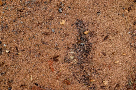 A large colony of ants work in their anthill. Spring awakening