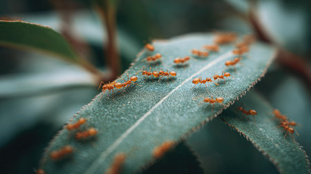 A macro shot of ants tending to aphids on a plant, illustrating their symbiotic relationship and the complexities of insect ecology.