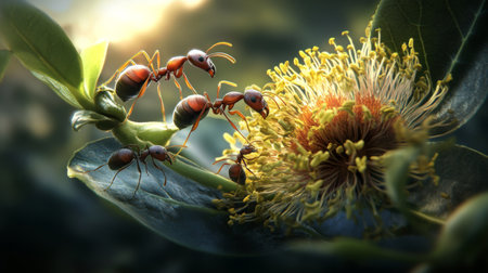 Explore the intricate world of ants as they interact with a stunning flower, highlighting the delicate balance of nature and the beauty of small creatures within their environment.