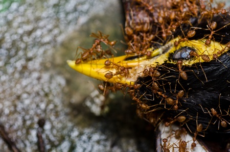 red ant eat bird in green nature or in the forest
