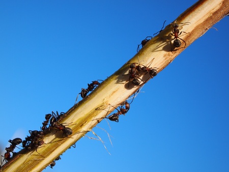Ants climb on the branches