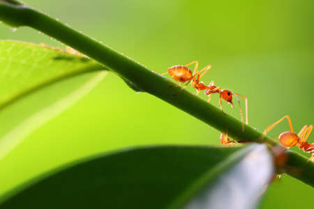 red ant teamwork in green nature or in the garden