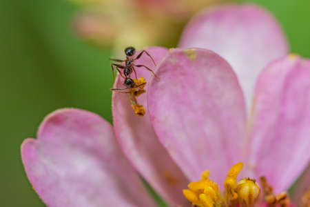 Macro photo of ants. Ants eating sugar close up. insect macro photography.