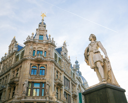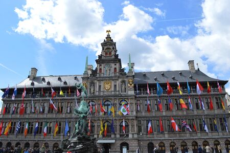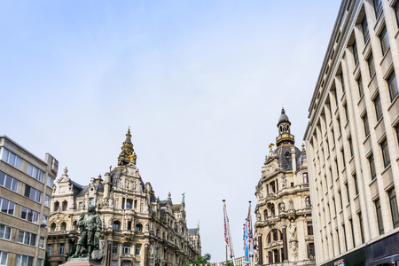 ANTWERP, BELGIUM - JULY 5, 2016 : Historical city hall and old town of Antwerp with stylish architecture. Antwerp is the capital city in the region of Flanders, Belgium