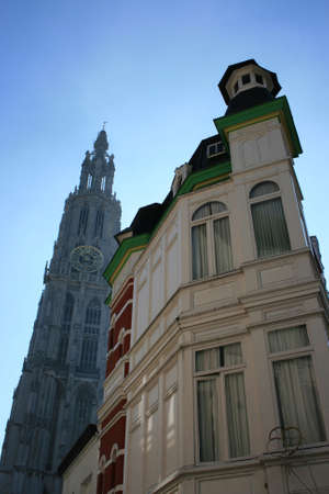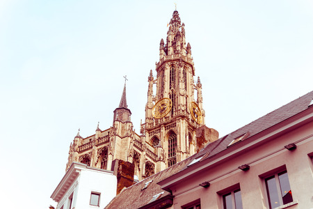 Morning view on a catherdral of Antwerp, Belgium