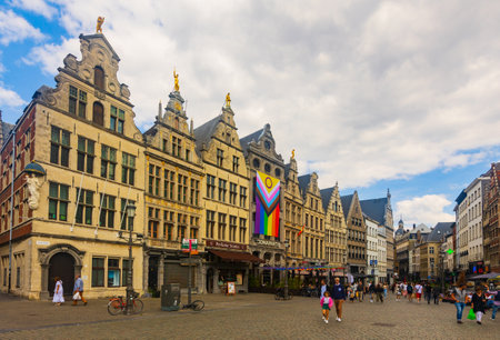 Antwerp, Belgium - August 06, 2022: Guildhouses in Grote Markt (Big Market Square) in old town of Antwerp, Belgium