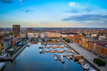 Antwerp, Belgium, June 2011: view on the Willemdok at Eilandje, surroundings and cityscape