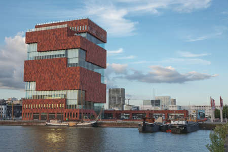 Antwerp, Belgium - June 16, 2017: The Museum aan de Stroom located along the river Scheldt in the Eilandje district of Antwerp, Belgium.