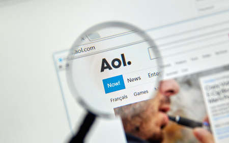 MONTREAL, CANADA - FEBRUARY, 2016 - AOL mail and news on the web under magnifying glass.