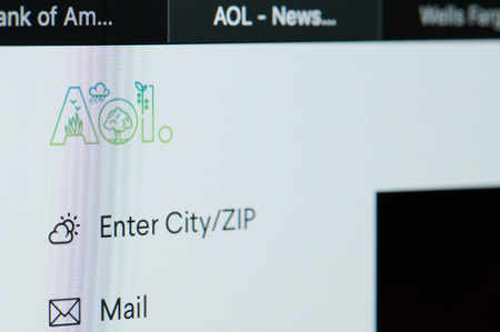 Ryazan, Russia - March 01, 2018 - Homepage of AOL on a display of PC