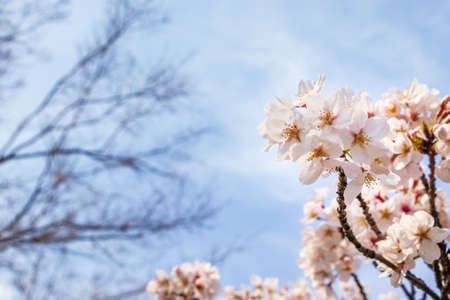Soft pastel color,Beautiful cherry blossom (Sakura) blooming with fading into pastel pink sakura flower,full bloom a spring season in japan
